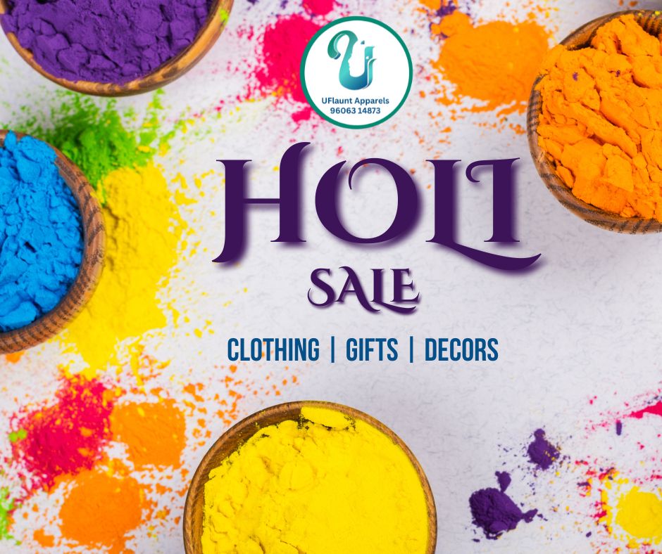 Celebrate Holi 2026 with UFlaunt Apparels exciting online sale event. Explore a kaleidoscope of discounts on Holi essentials, from traditional attire, gifts to festive decor.