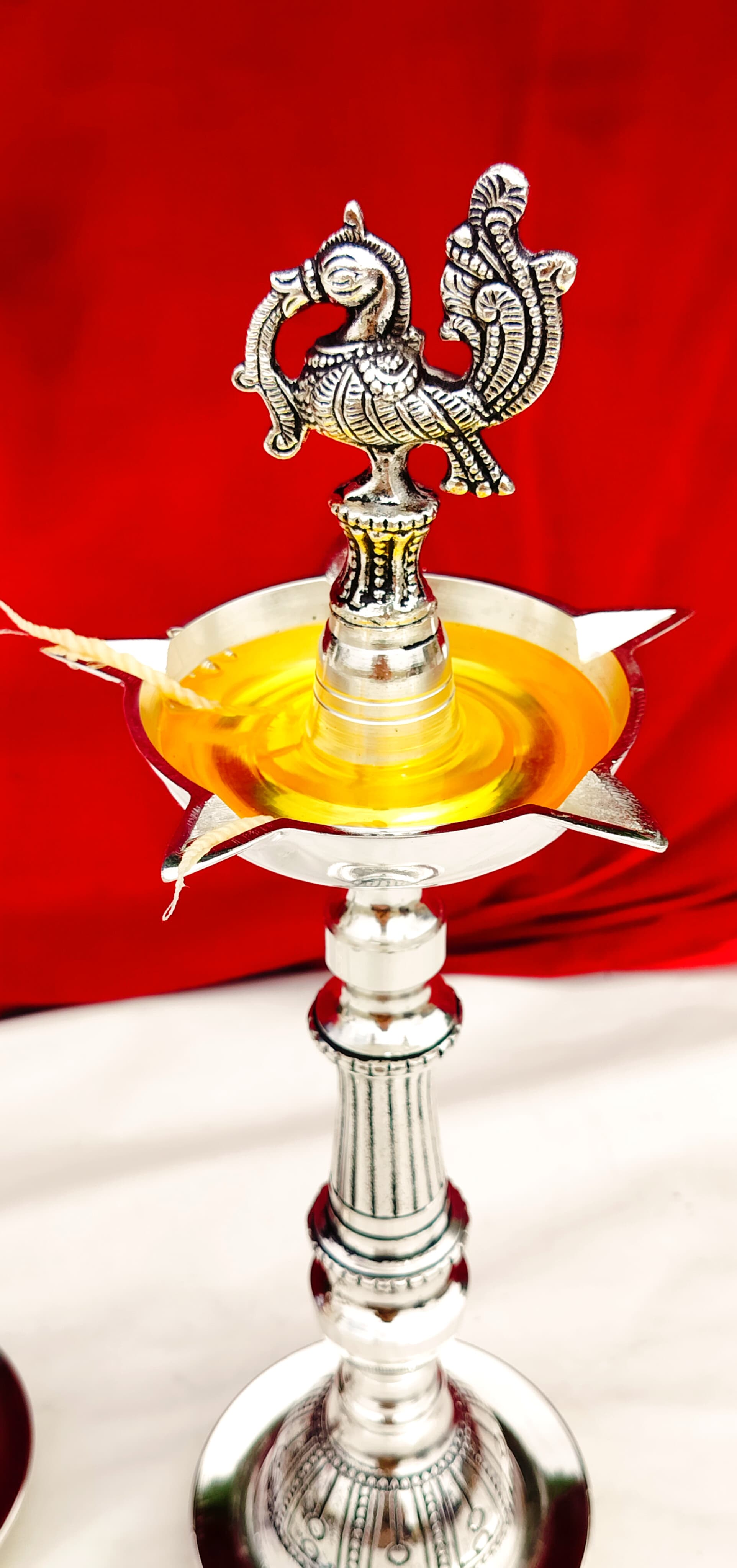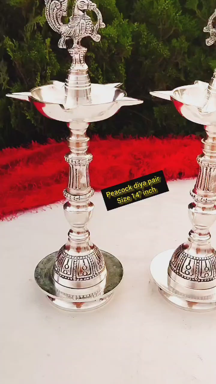 1. High quality washable daily use Antique German silver peacock diya 🪔 pair