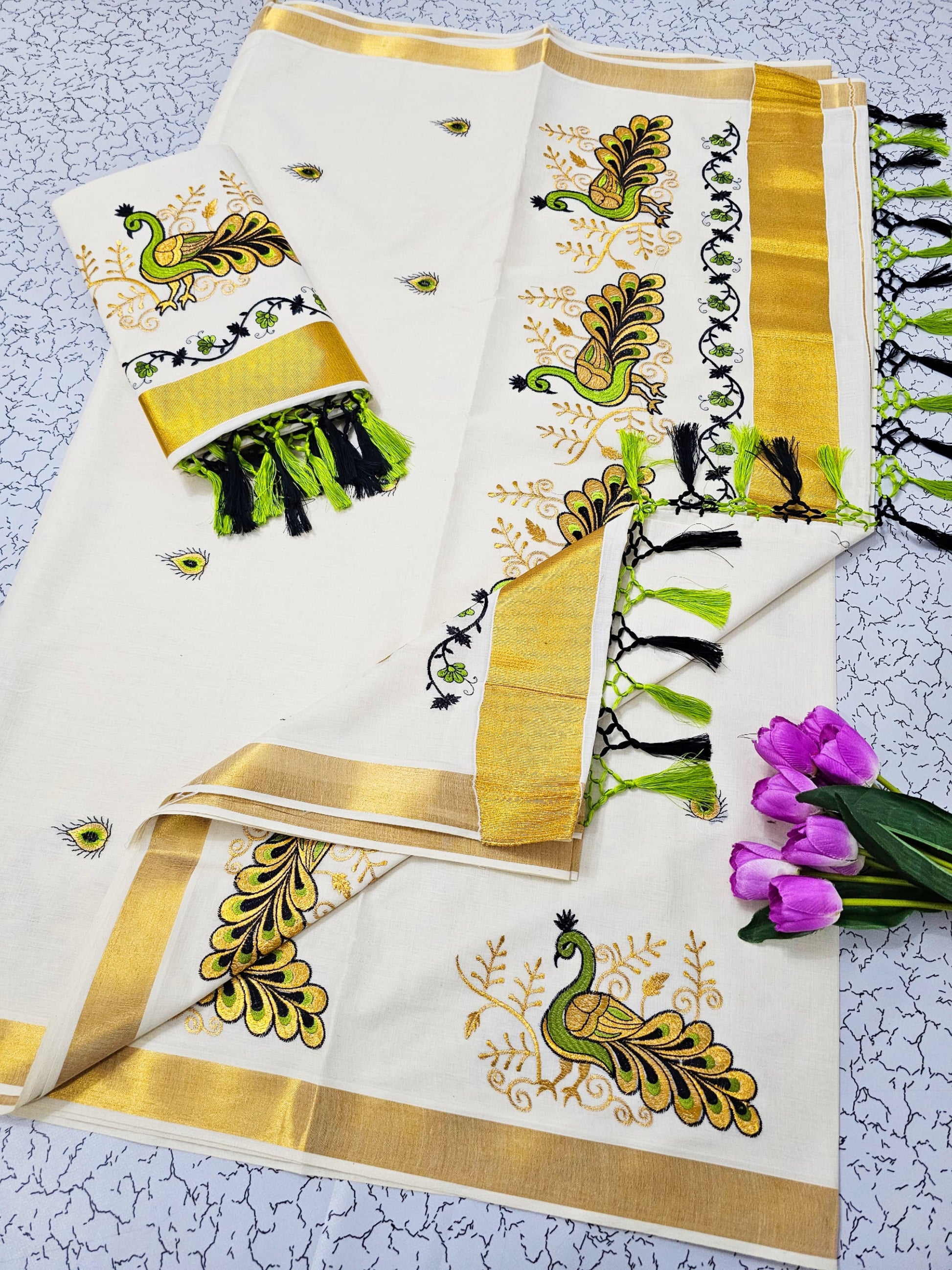 Kerala cotton saree with embroidery work.
