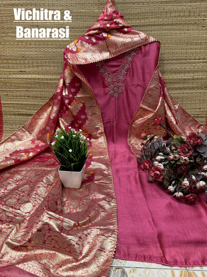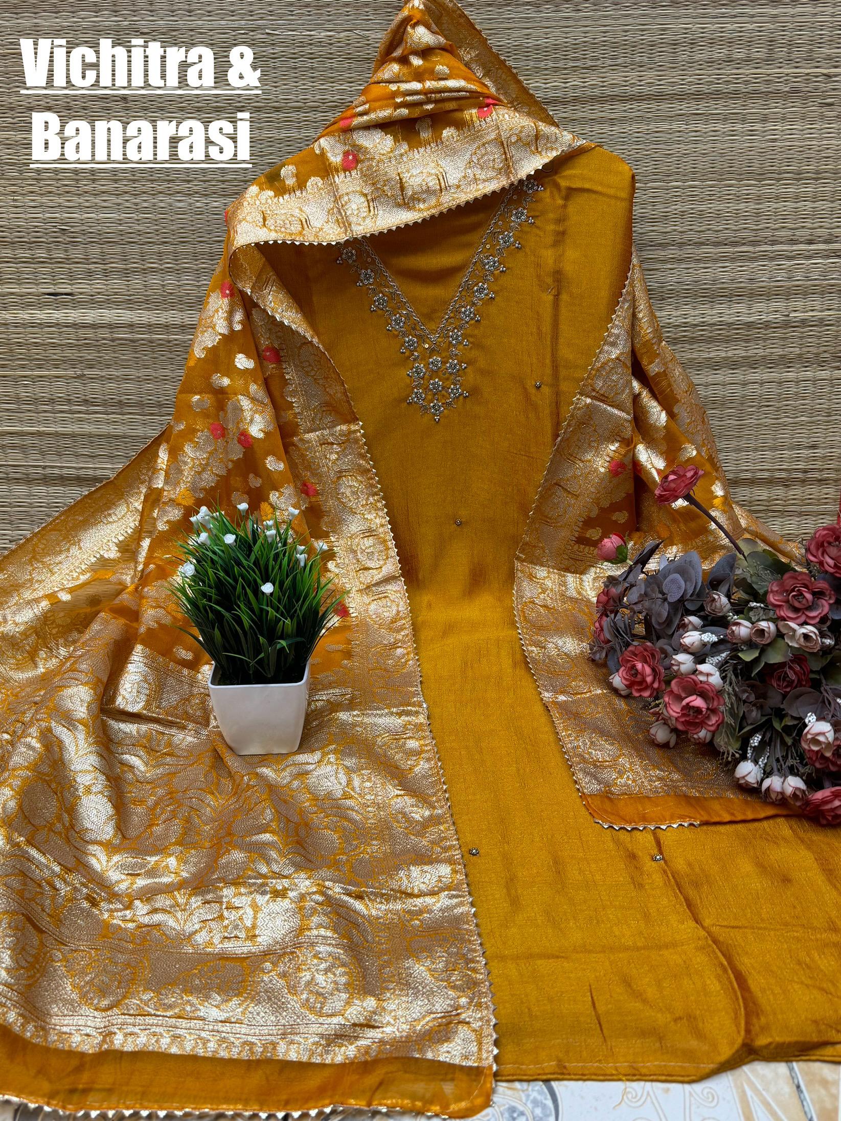 *Dupatta* Banarasi silk with gold jacquard borders 2,25 mtr