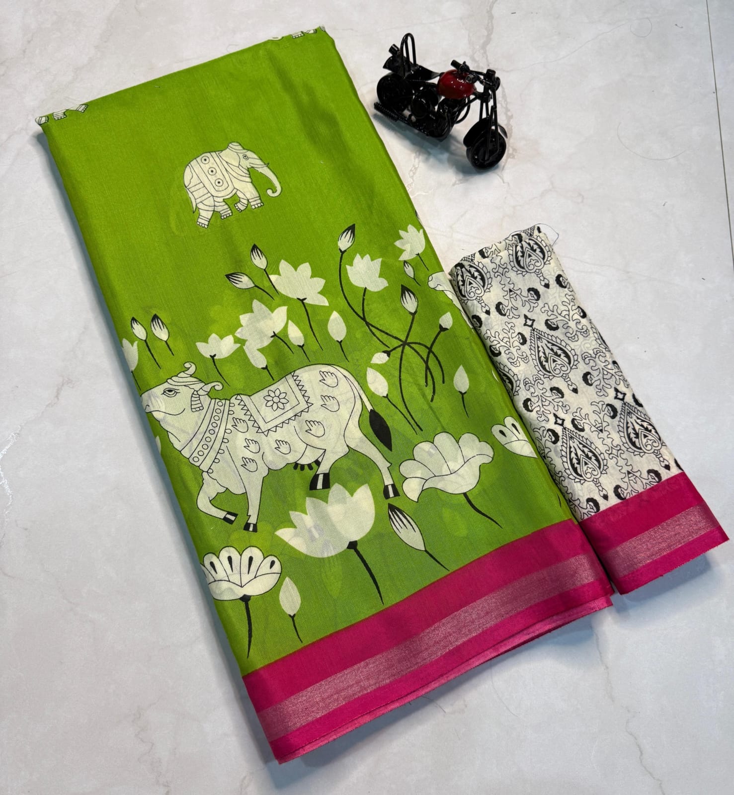 Sankranti/Pongal Special Sale of *Soft mul mul cotton sarees with pitchwai & pen* *kalamkari designs*
