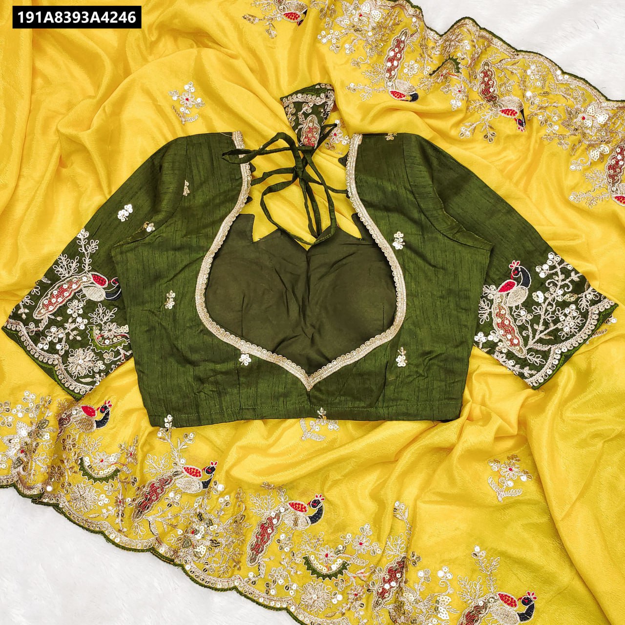 Blouse : Premium Mono Silk With Heavy Embroidery Threads Codding & Sequence Work Unstiched Blouse